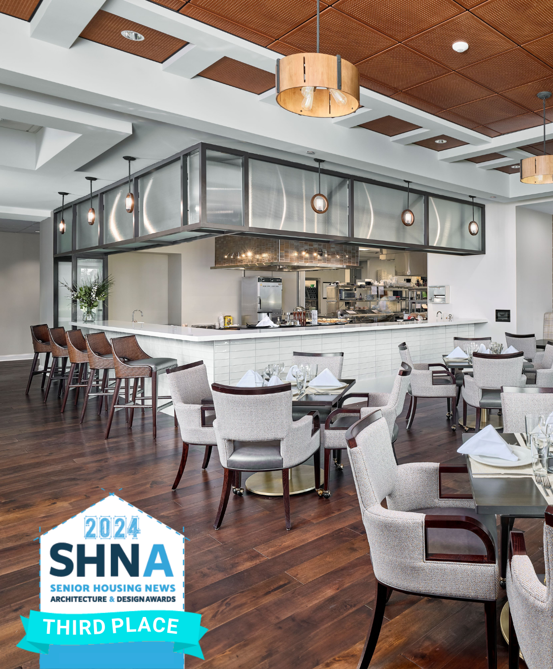 The Design for Aging award recognizes architects who demonstrate innovative design solutions to improve the quality of life for older adults and is one of the most competitive and respected recognitions in the field of senior living design.