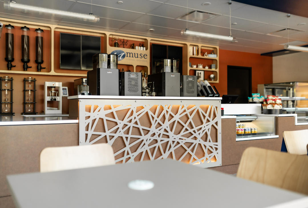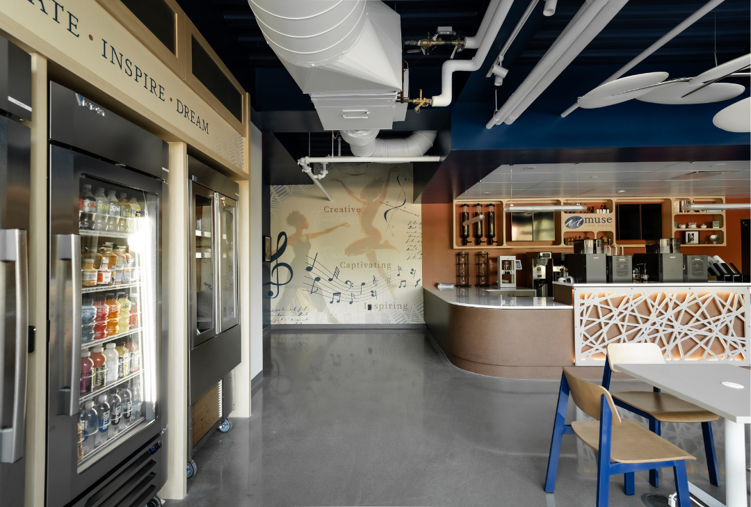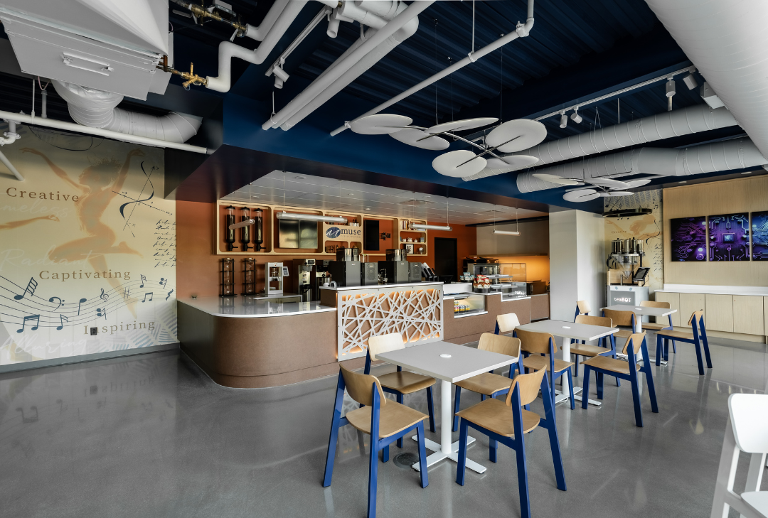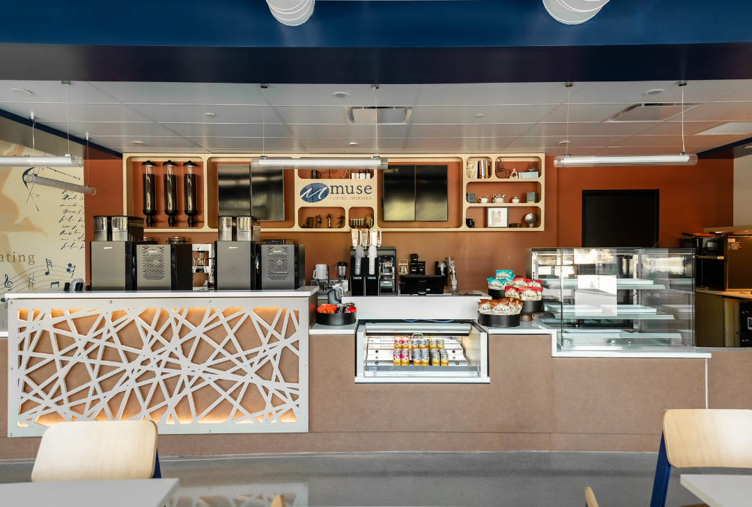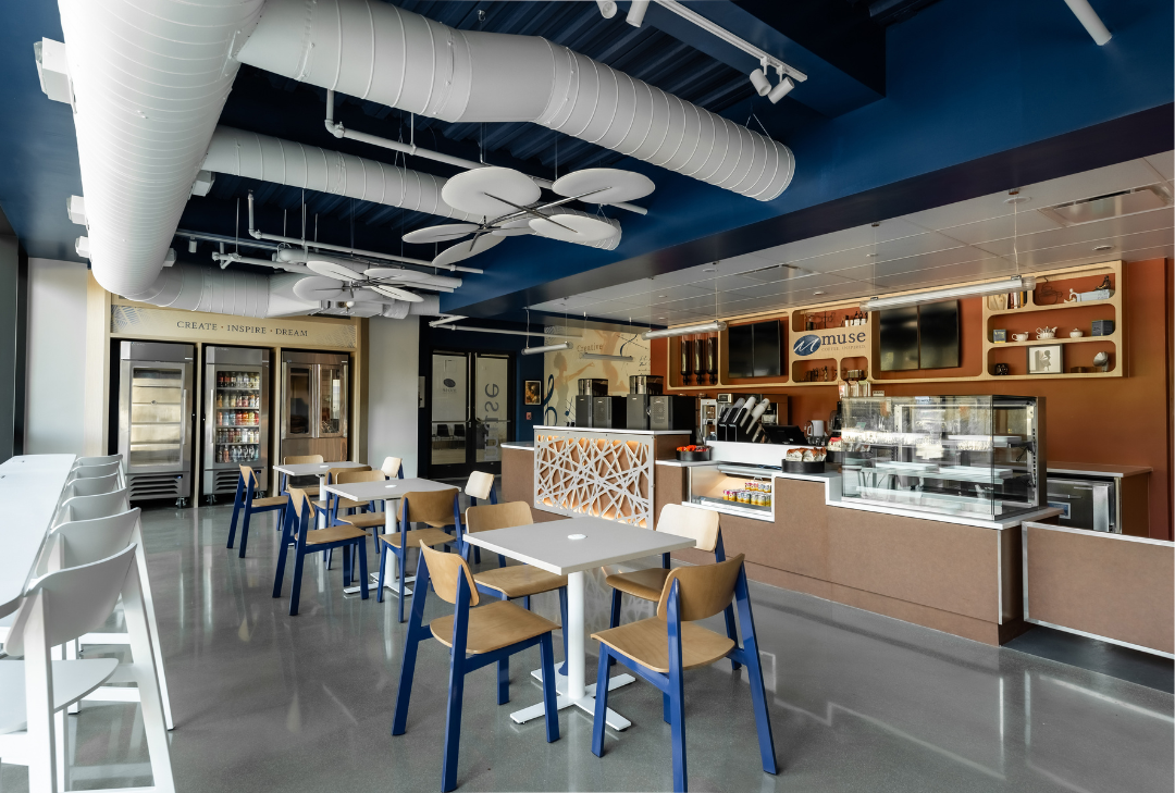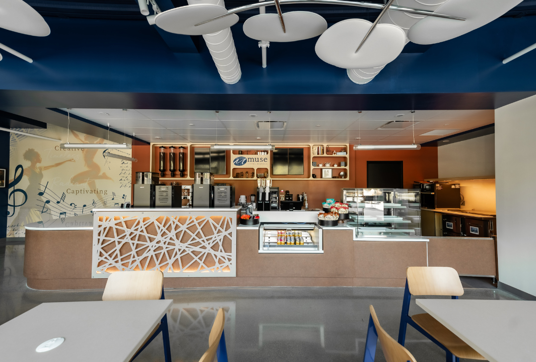 SCOPOS Hospitality Group led the interior design and procurement efforts for the Spelman CIA Muse Café, transforming the space into a vibrant and functional environment that reflects the café’s academic and cultural mission. The team curated furniture, fixtures, and accessories to support both operational efficiency and aesthetic cohesion. Procurement included turnkey sourcing of millwork, seating, and specialty items, ensuring seamless integration with the design intent. Every element, from layout to finishes, was selected to enhance the user experience and align with Spelman’s institutional identity.