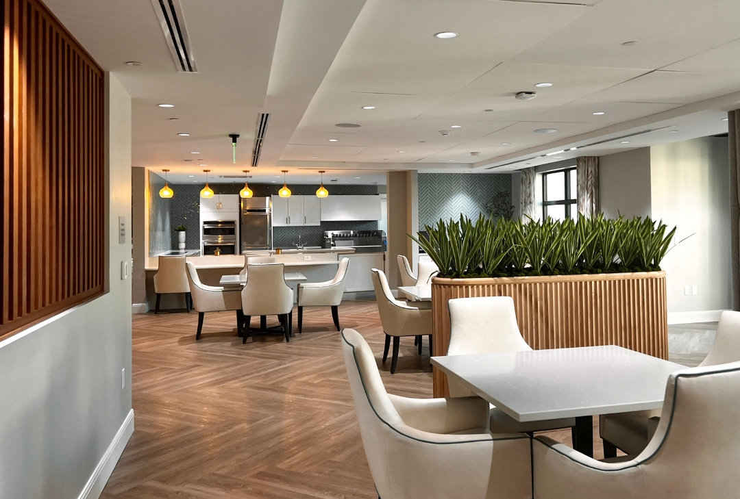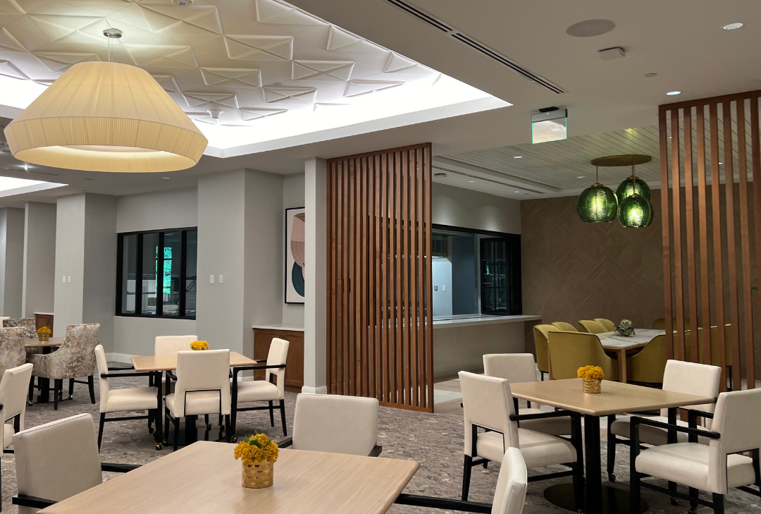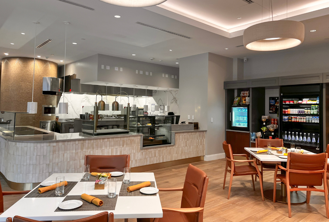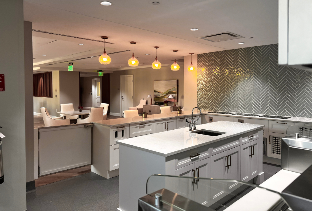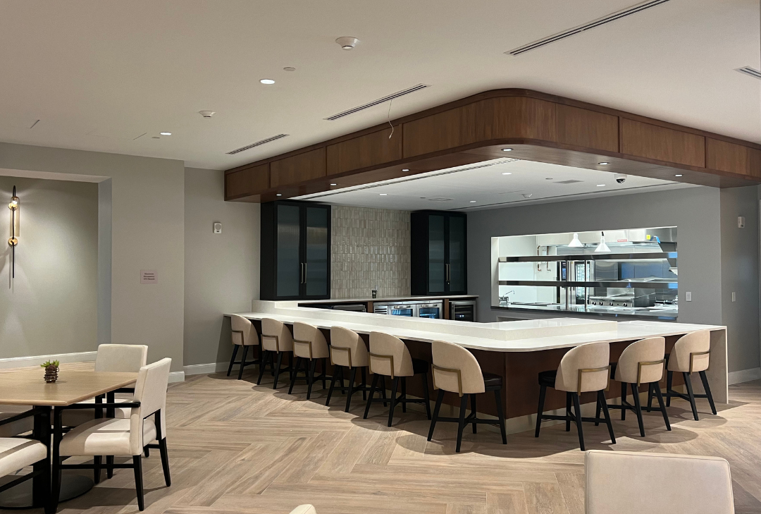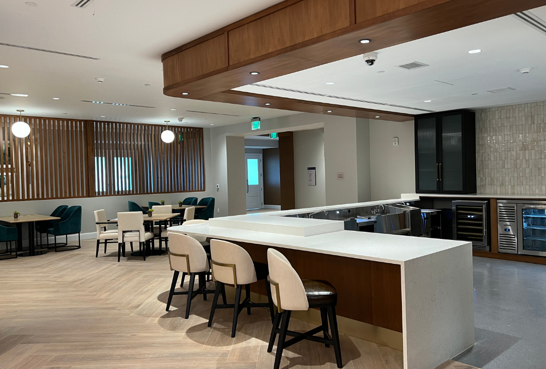 In the heart of Gaithersburg, Maryland, this project set a new standard for senior living dining and social venues. The design introduces a diverse mix of experiences, fr om a bistro & marketplace, to a club room, expo restaurant, assisted living bar, and a flex bar, each crafted to enhance both everyday living and special occasions. The result is a seamless balance of efficiency and hospitality, wh ere residents and guests enjoy elevated dining options within thoughtfully designed spaces. Recognized across industry media for its forward-thinking approach, this project reflects how design can transform not just operations, but the way people gather and connect.