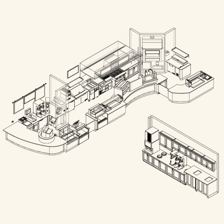 Our branding team worked closely with PMMA and Greystone to develop custom venue identities that reflect the region’s geography and history. This included designing signage, menus, and staff uniforms that embodied each venue's personality. The map wall at Zeb’s, for example, ties the venue to its local roots, while carefully selected smallwares complement the brand’s identity, enhancing both functionality and ambiance. The result is a harmonious blend of food service design and thoughtful branding, where each space offers residents a unique dining experience while celebrating the community’s spirit and heritage.