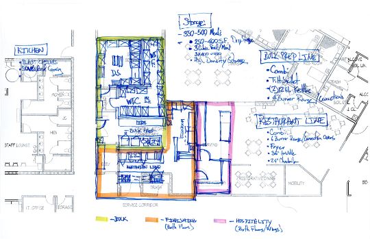 Architecture, Food Service, Interiors & Branding cover critical coordination elements that can often clash and require delicate coordination details. Visualizing them in real-time allows each discipline to cover any potential gaps. The design team used this process to collaborate and communicate concepts to the client.