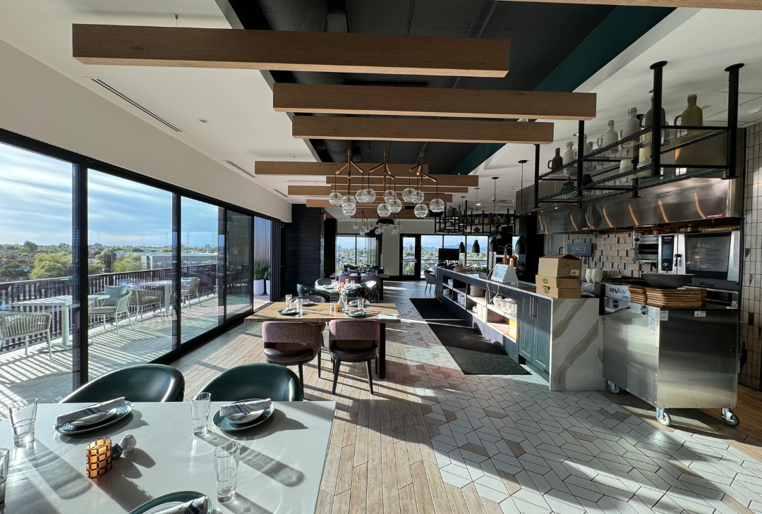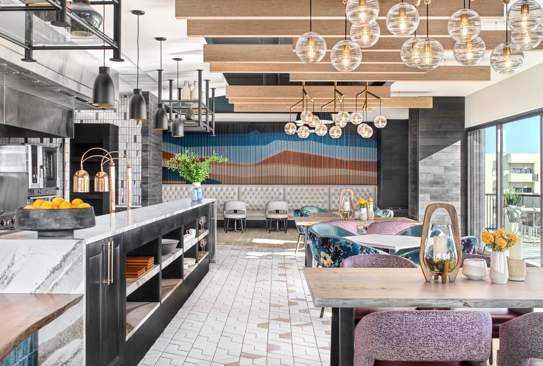 The project features a full-service restaurant with an open grill line, a semi-formal dining experience with a focus on seasonal and local ingredients, the opportunity for teaching kitchen classes, and wine tasting. The bar opens up to the roof and features a tapas menu, perfect for people who want to try a variety of different dishes. The main highlight of this project is the rooftop microbrewery, the first of its kind in the senior living industry. The microbrewery offers a variety of craft beers brewed on-site by a local brewmaster, as well as a comfortable and inviting roof space for residents to relax and socialize. The project is designed to provide residents with a variety of dining and social options to promote a sense of community. The rooftop microbrewery is a unique feature that is sure to be a hit with residents and visitors alike.