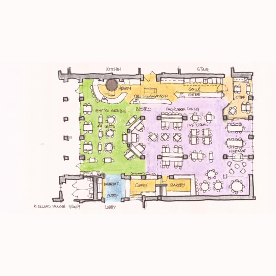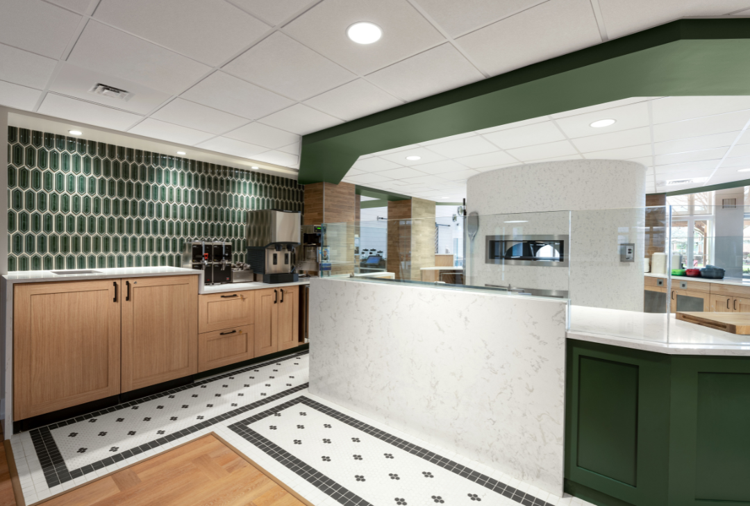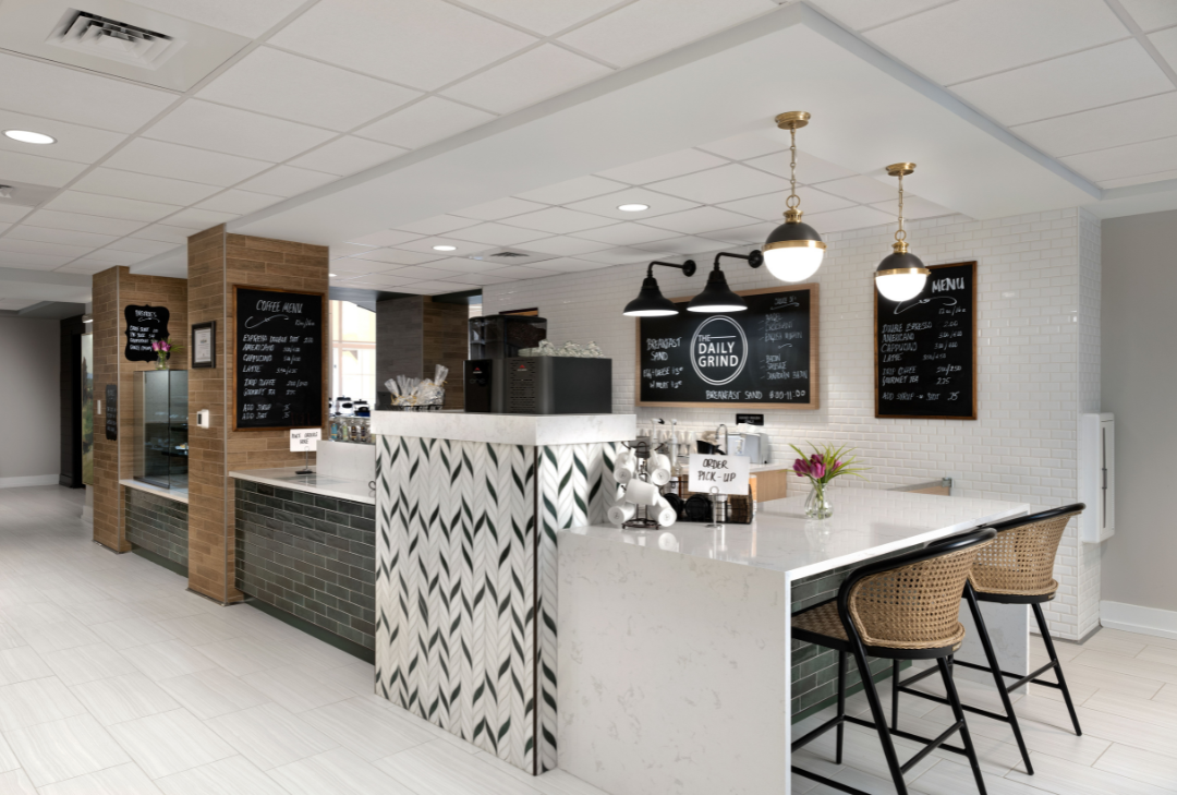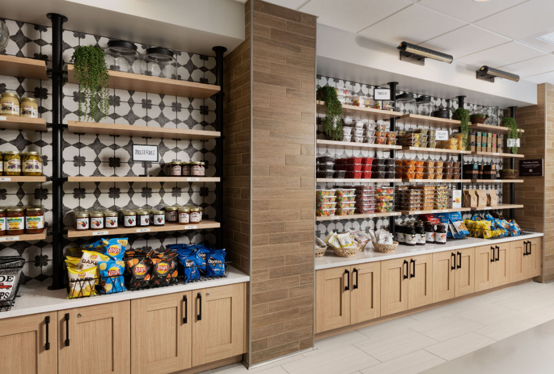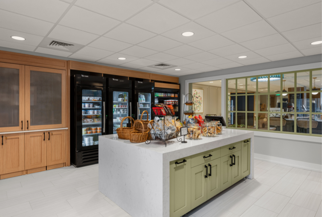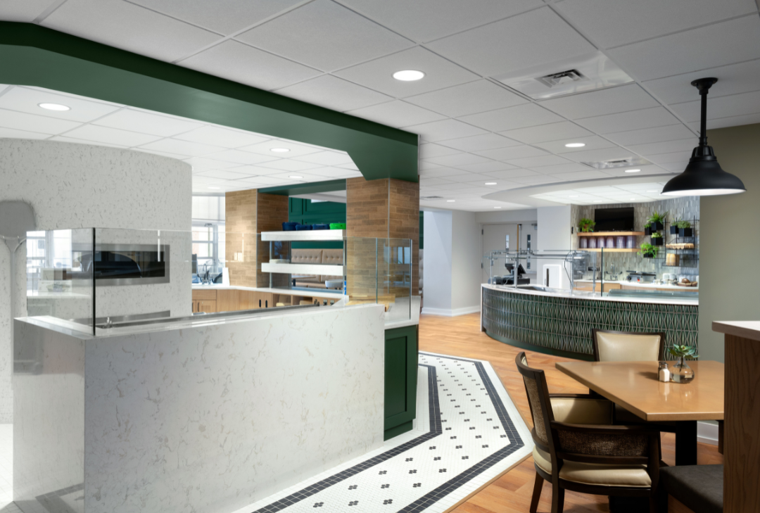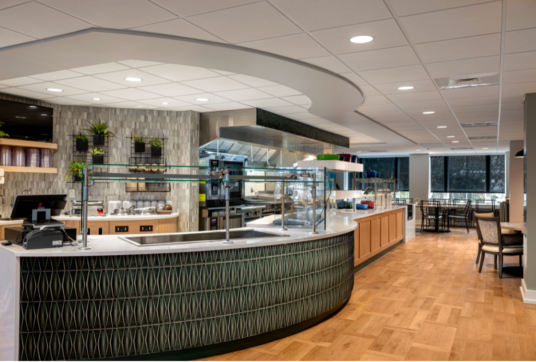 This project consisted of a full renovation of an existing Café area to include a new Coffee Shop, a full 24/7 Market with self-checkout technology, and a Marketplace featuring a grill and hearth oven offering multiple stations and expanded menu options. Food safety, transparency, and operations flexibility were considered as the spaces were programmed and designed. With collaborative planning, we improved operations using simplified solutions and technology to reduce labor, limit risk, and minimize food waste.