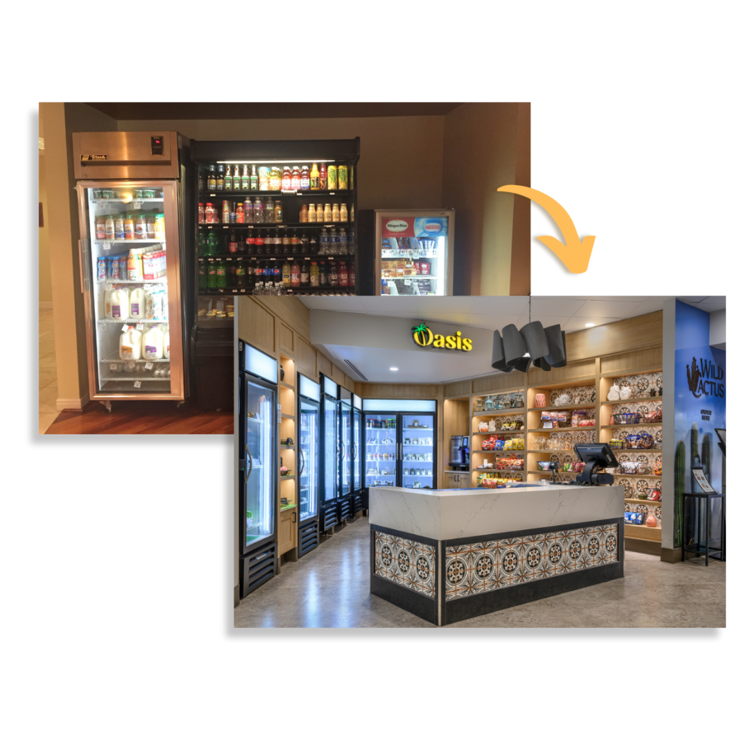 Royal Oaks in Sun City, AZ, exemplifies the evolution of senior living dining, transforming six distinct venues into modern, functional spaces. Embracing a “Modern Desert” aesthetic, the design blends contemporary elements with Arizona’s natural beauty. Each venue—Thrive Coffee Shop, Oasis Market, Wild Cactus Bistro & Grill, Sonrei Expo Restaurant, Willow Reserve Wine Room, and 1983 Pub—was thoughtfully branded to enhance identity, efficiency, and experience. Features like a robotic busing system, self-checkout market, and live cooking demonstrations elevate service and engagement. This renovation sets a new standard for senior living, seamlessly integrating design, branding, and operations.