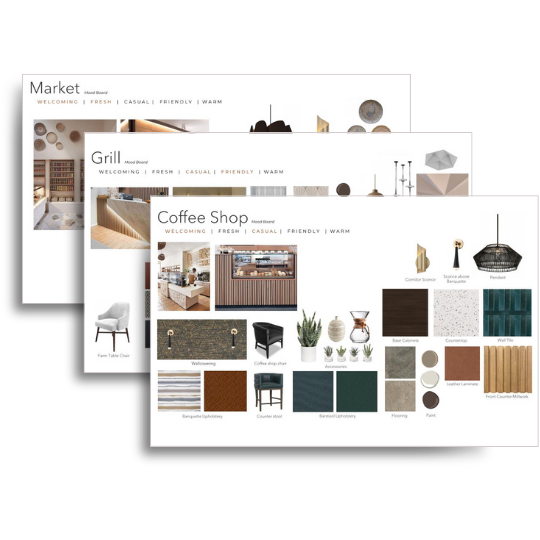 Architecture, Food Service, Interiors & Branding cover critical coordination elements that can often clash and require delicate coordination details. Visualizing them in real-time allows each discipline to cover any potential gaps. The design team used this process to collaborate and communicate concepts to the client.